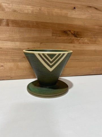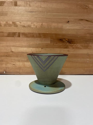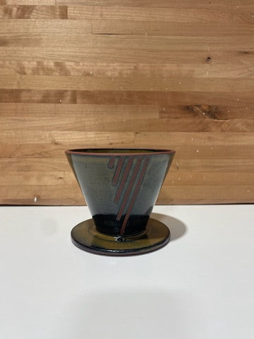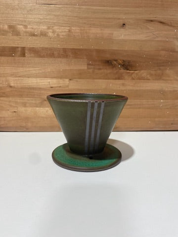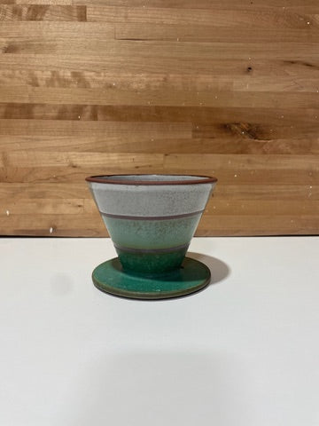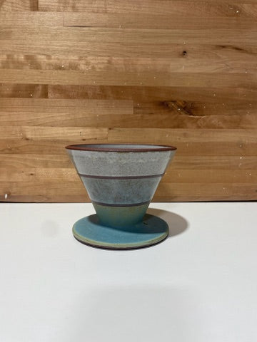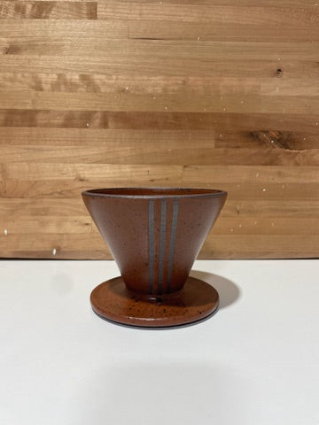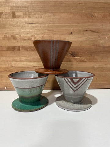 Hand thrown stoneware with assorted glazes and raw clay designs. A size 1 or 2 V60 filter fits great in this ceramic pour over to complete your morning coffee ritual.