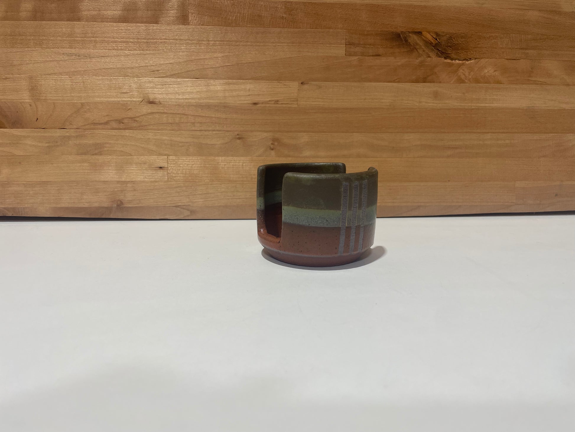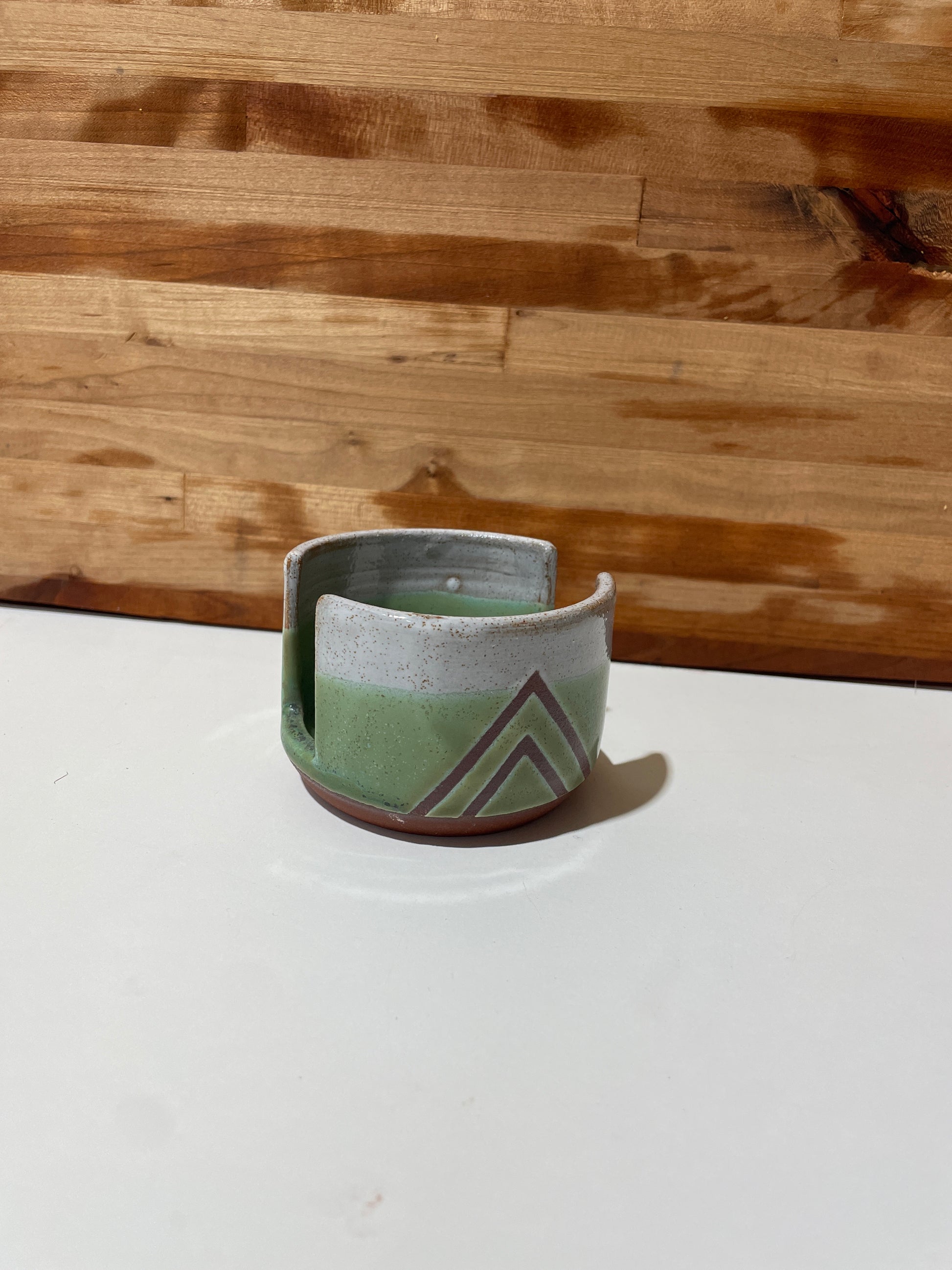 Hand thrown stoneware sponge holder. Keeps sponge dry and bacteria free.