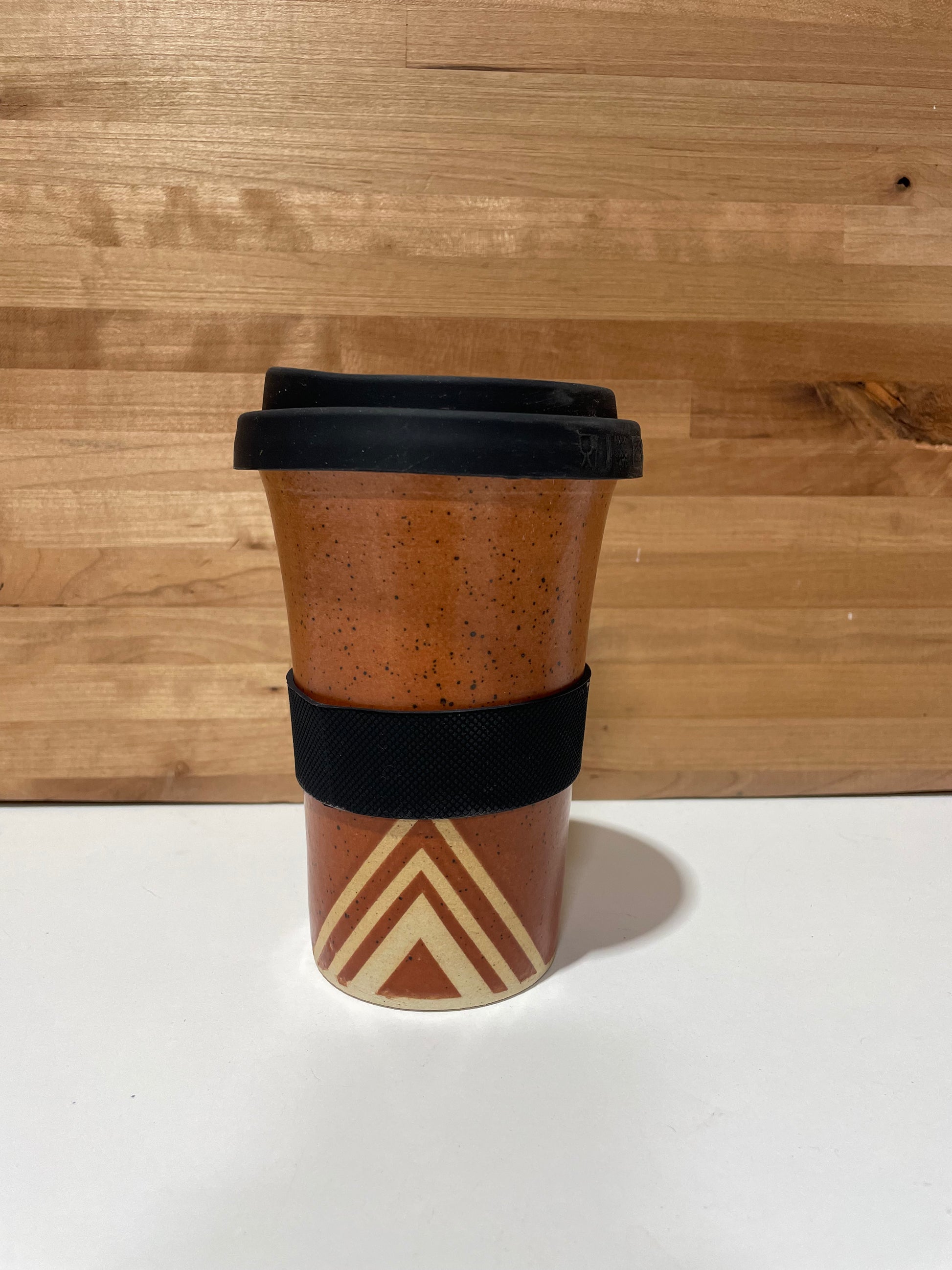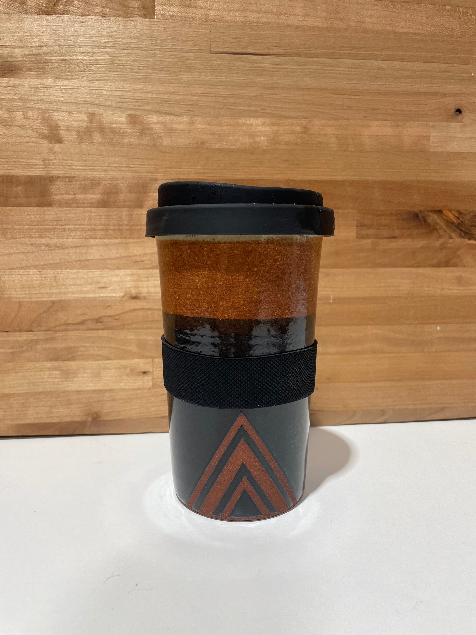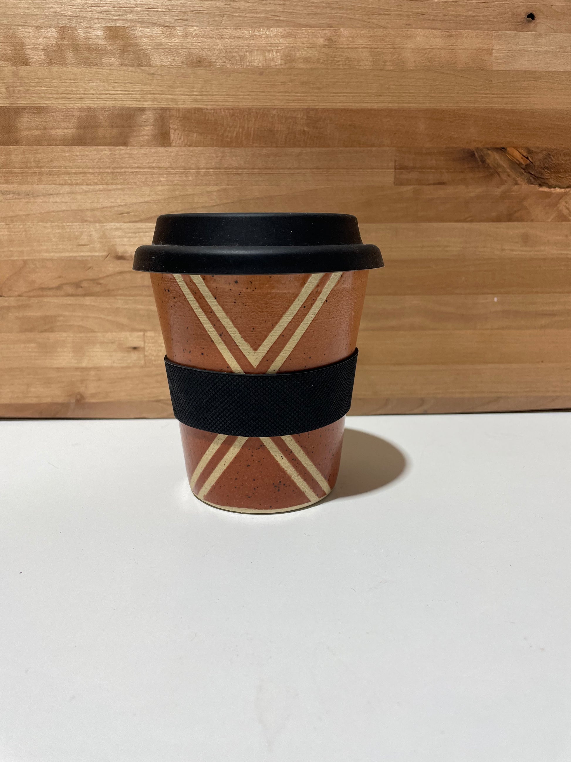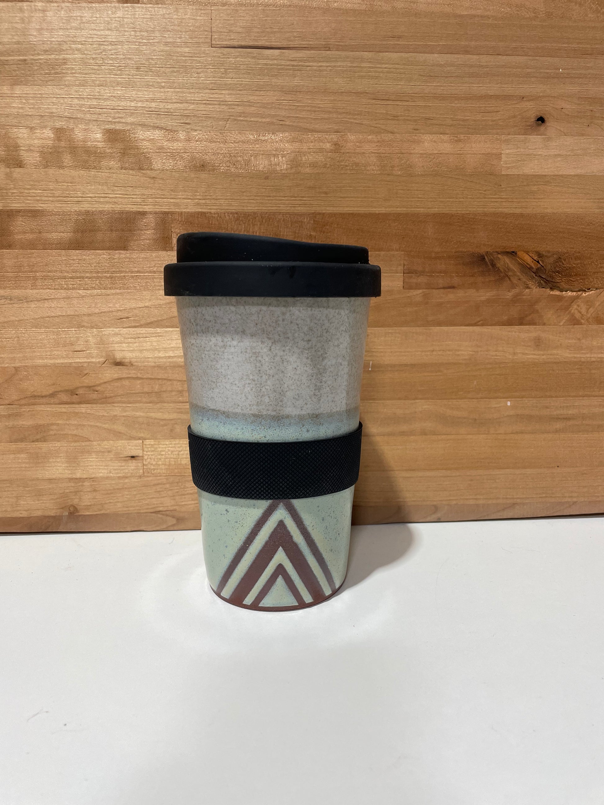 wheel thrown travel mug. come with reusable silicone lid and sleeve.
