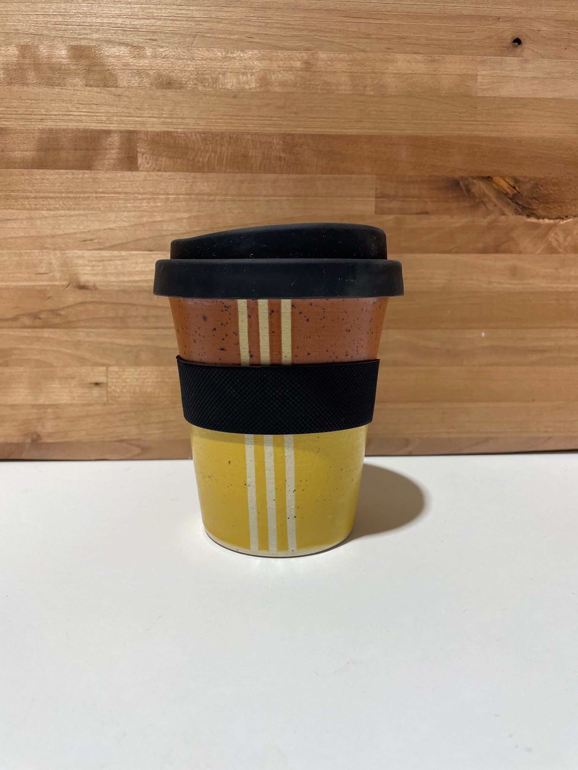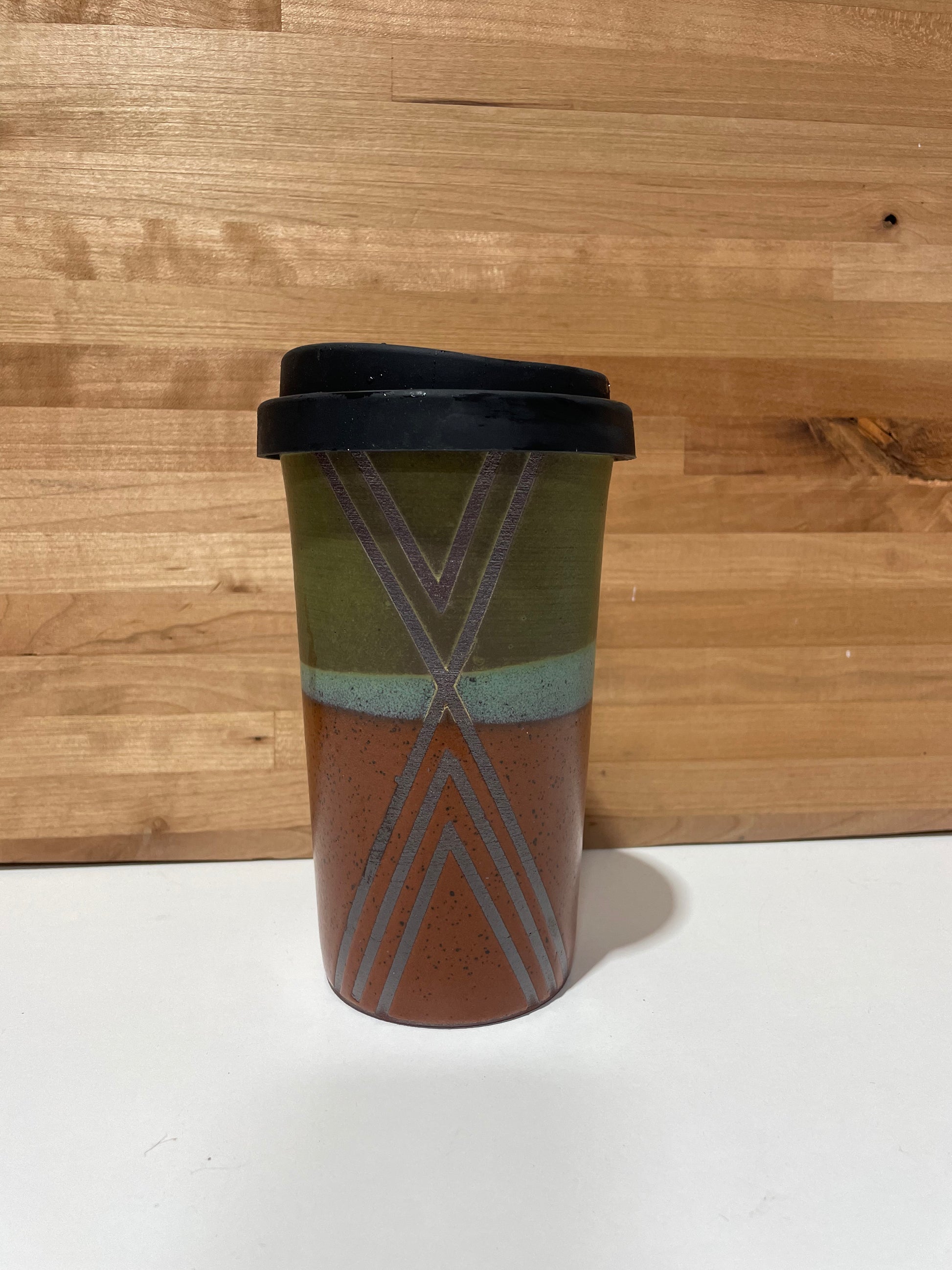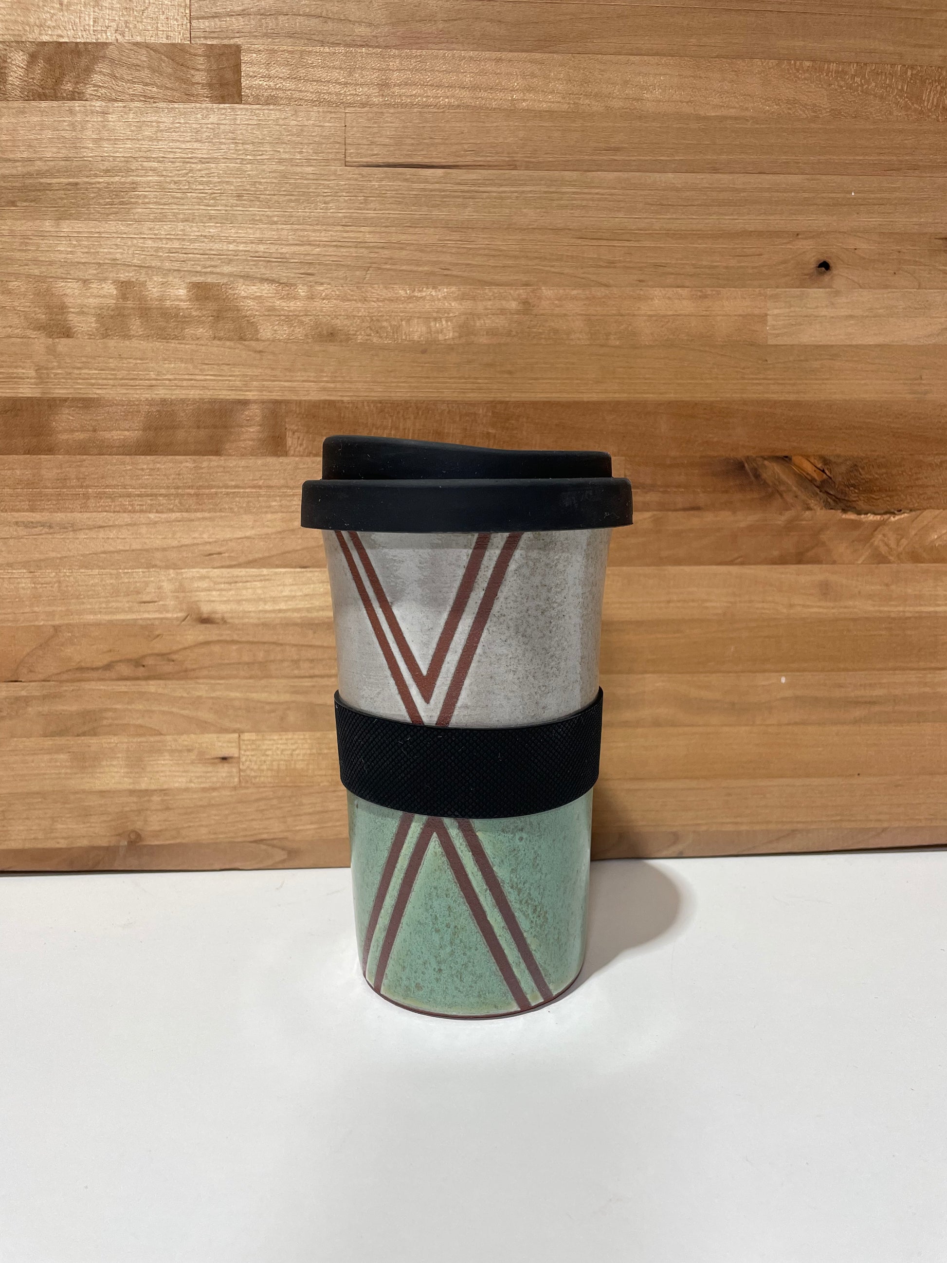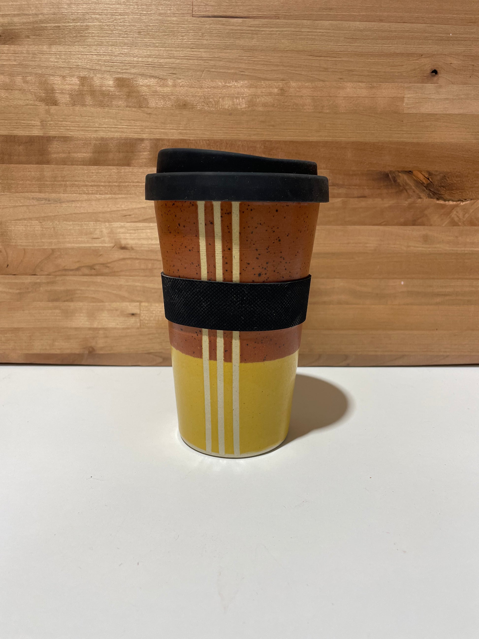 wheel thrown travel mug. come with reusable silicone lid and sleeve.